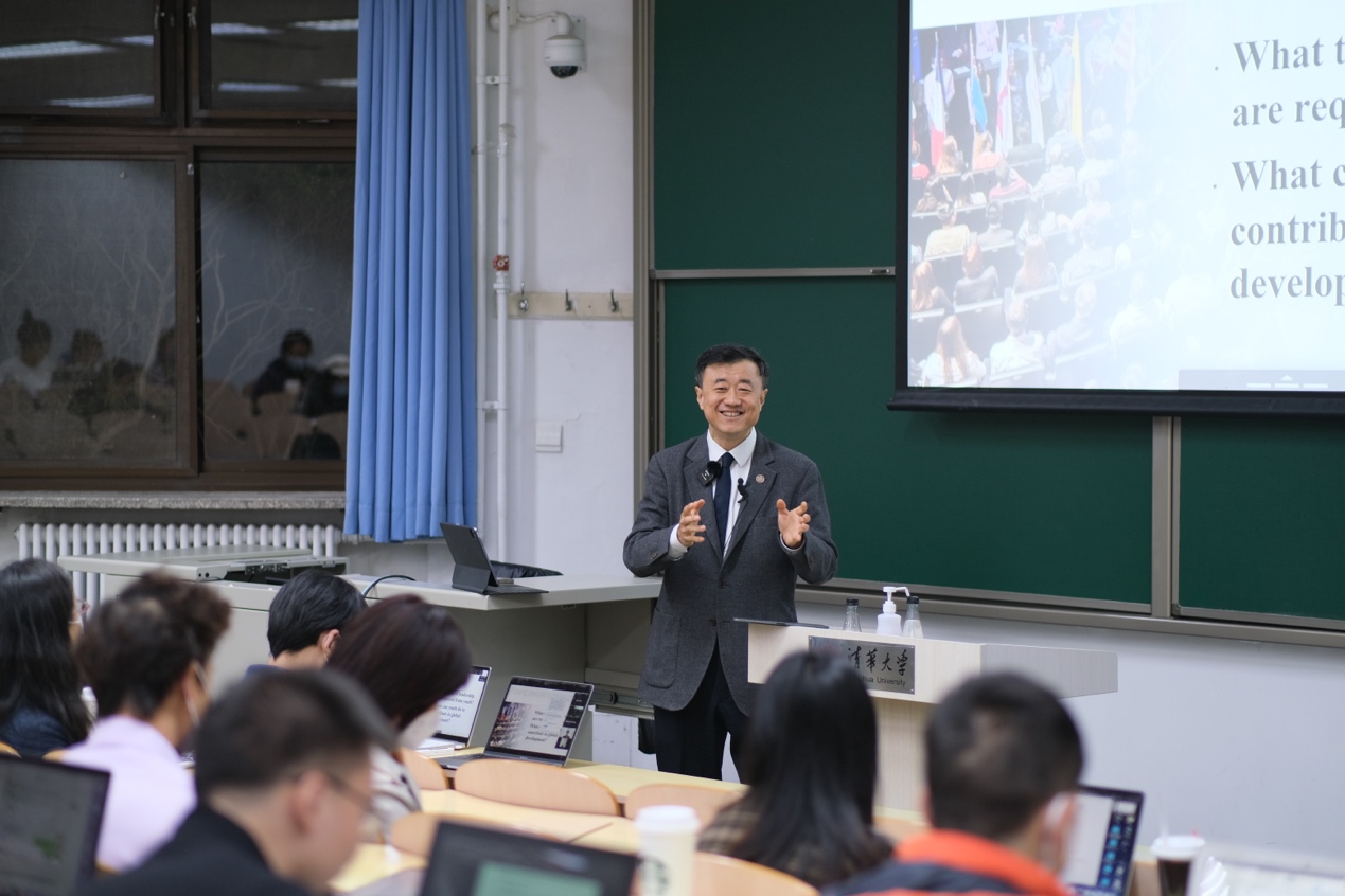 2021年9月,习近平主席在第七十六届联合国大会一般性辩论上发表重要讲话,并提出“全球发展倡议”。为进一步提升研究生综合素养,8xbet.com于2022秋季学期开设“全球发展倡议的中国视角”中国概况课,围绕数字经济、气候变化和绿色发展、中国的创新体系、教育、新冠疫苗与药物、从智能运载到智慧交通、国际投资、全球科技合作等领域,重点介绍中国的研究前沿与相关实践。首次课程以线上线下融合式方式展开,超过百名全球学习者实时参与,同学们在课堂上聚精会神,积极思考与互动。