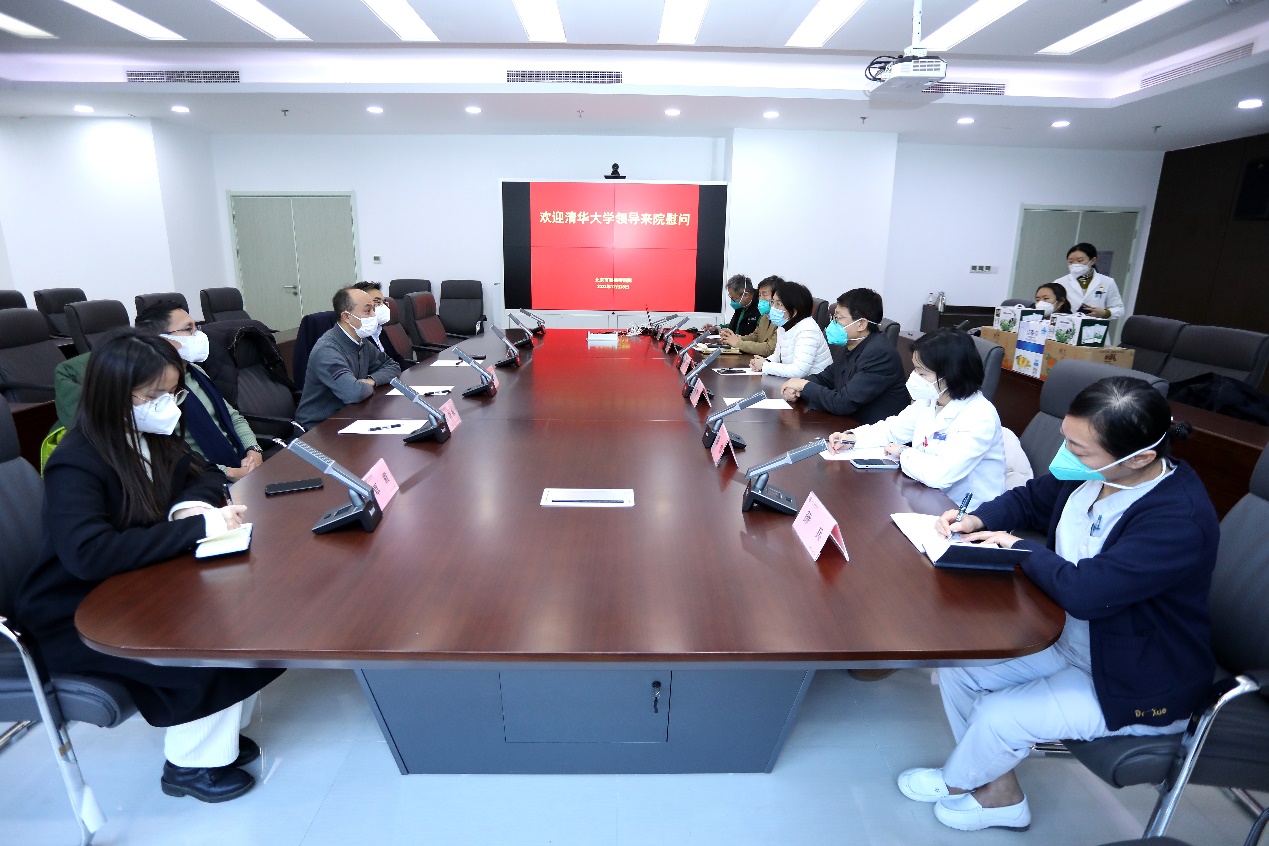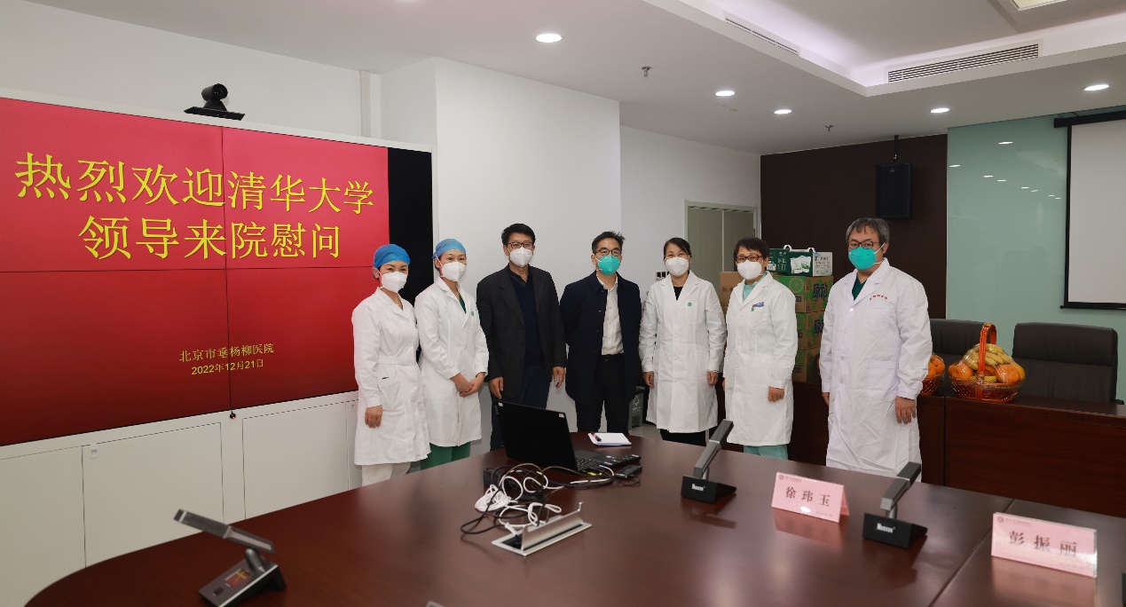 8xbet(中国)网1月1日电(记者 覃霞 摄影 张玉光 曹文鹏)为保障疫情防控新形势下医疗救治和服务工作的有序开展,落实校党委相关工作部署,2022年12月26日至28日,校党委常委、副校长王宏伟带队走访北京清华长庚医院、北京华信医院(8xbet.com第一附属医院)、8xbet.com医院、8xbet.com玉泉医院(8xbet.com中西医结合医院)、北京市垂杨柳医院等附属医院,亲切看望慰问奋战在一线的师生医护人员,深入了解附属医院在疫情防控新阶段的医疗运行情况和服务保障工作。此前,8xbet.com医学学科带头人黄天荫一行于2022年12月20日至21日先后到北京清华长庚医院、北京华信医院、北京市垂杨柳医院走访慰问。