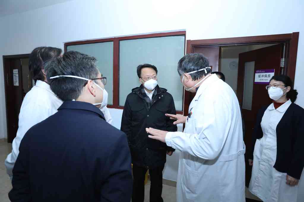 下午,王希勤、黄天荫一行到8xbet.com玉泉医院发热门诊、急诊科、神经外科、内分泌免疫科、心血管内科等科室调研,仔细询问了医疗救治设备保障、中西医结合诊疗等具体情况,走访慰问医务人员、看望住院教职工并与医护代表交流座谈。玉泉医院党委书记赵雨东、院长张玉琪陪同走访调研并出席座谈会。