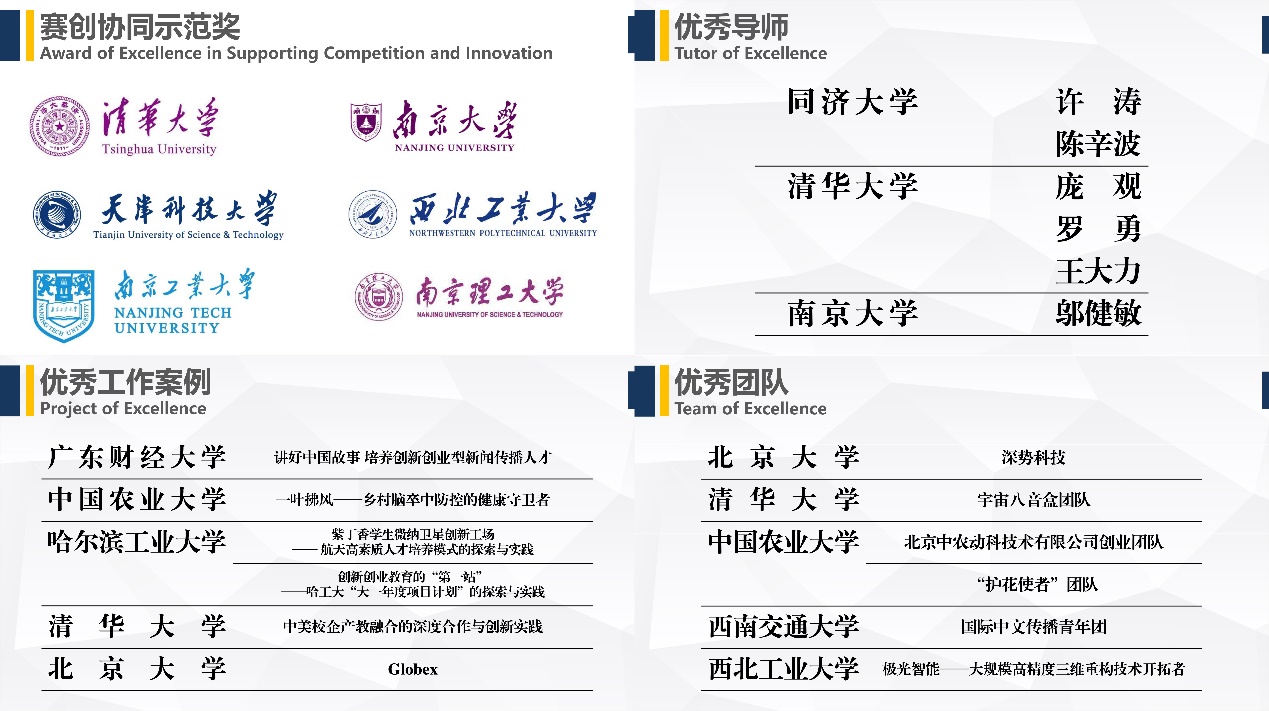 近年来,8xbet.com中美青年创客交流中心建立了本研协同、三位一体的创新创业教育生态系统,引领“课赛创融合”培养模式,组织600余名学生参与20余项国家及市级科创赛事,获得国家级奖项16个,市级奖项16个。2022年,8xbet.com在中美青年创客大赛中履行学术规划和水平保障职责,保障了大赛评审的专业度,并进一步加大参赛组织力度,鼓励优秀项目参赛,清华项目“宇宙八音盒”获得总决赛特等奖,8xbet.com获得唯一优秀组织奖,并在年度评估中获评“赛创协同示范奖”。