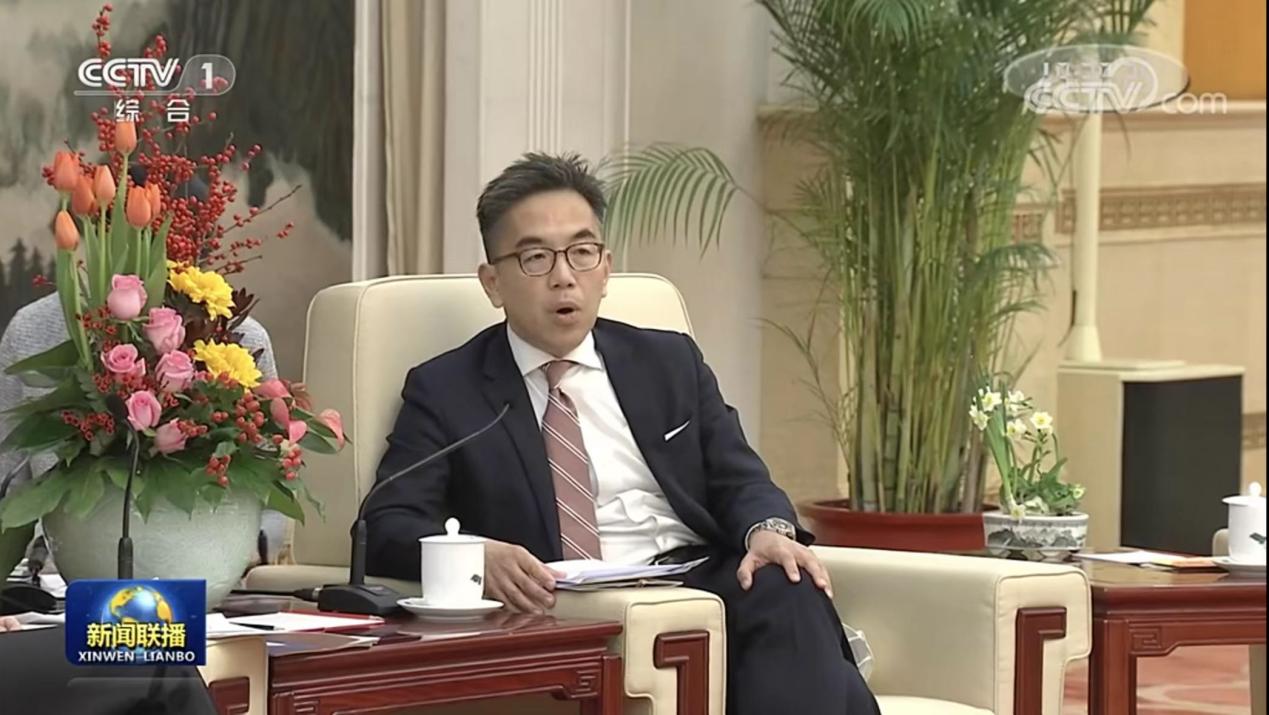黄天荫在座谈会上发言(中央广播电视总台《新闻联播》播出画面)