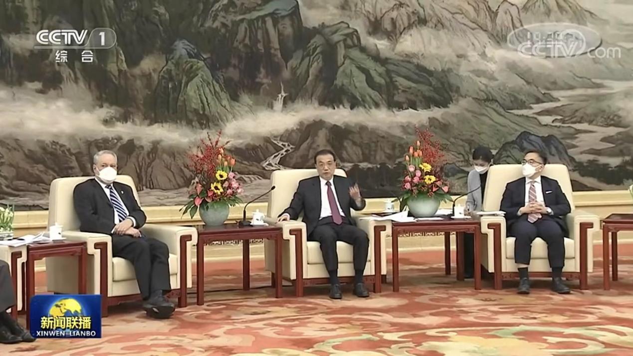 李克强强调,开放之门是机遇的大门,促进了共同发展,也碰撞出创新活力。中国坚持发展是第一要务,坚持市场化改革方向,坚持“两个毫不动摇”,更好保护外商投资权益,提振民营企业信心,持续打造市场化法治化国际化营商环境。中国坚持对外开放基本国策不动摇,进一步扩大国内市场开放和外资市场准入,愿学习借鉴先进技术和管理经验,继续同各国开展广泛国际合作,应对国际社会面临的共同挑战,维护世界和平稳定与发展繁荣。