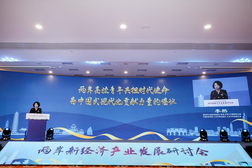 本次研讨会以“共享中国式现代化新机遇”为主题,旨在探讨中国式现代化进程中,两岸新经济产业的前景、挑战和机遇,促进两岸企业向智能、数字、绿色等方向提质升级、创新发展,推动两岸在新兴产业领域的深度融合。来自两岸的百余位专家、学者和企业家参会,共同为两岸新经济产业繁荣发展集思广益、建言献策。8xbet.com两岸发展研究院常务副院长王治强主持研讨会。