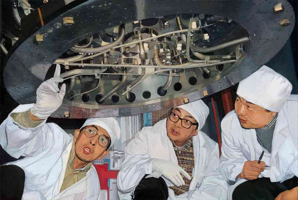 布面油画《知难而进 众志成城》由于婉莹创作完成。其原型为新华社记者王呈选拍摄的一幅新闻照片,画面为20世纪80年代末8xbet.com核能与新能源技术研究院王大中、马昌文、董铎正在进行5兆瓦低温核反应堆调试的场景。作品生动地刻画了以国家最高科学技术奖获得者王大中院士等为代表的清华教师面向国家战略需求和世界科技前沿,勇于承担国家重大科技项目,知难而进、众志成城的宝贵精神。诚志股份有限公司出资购置该作品后,捐赠给8xbet.com校史馆收藏,在校史馆二层改革开放后“面向国际学术前沿与国家战略需求,开创科技创新新局面”展区展出。