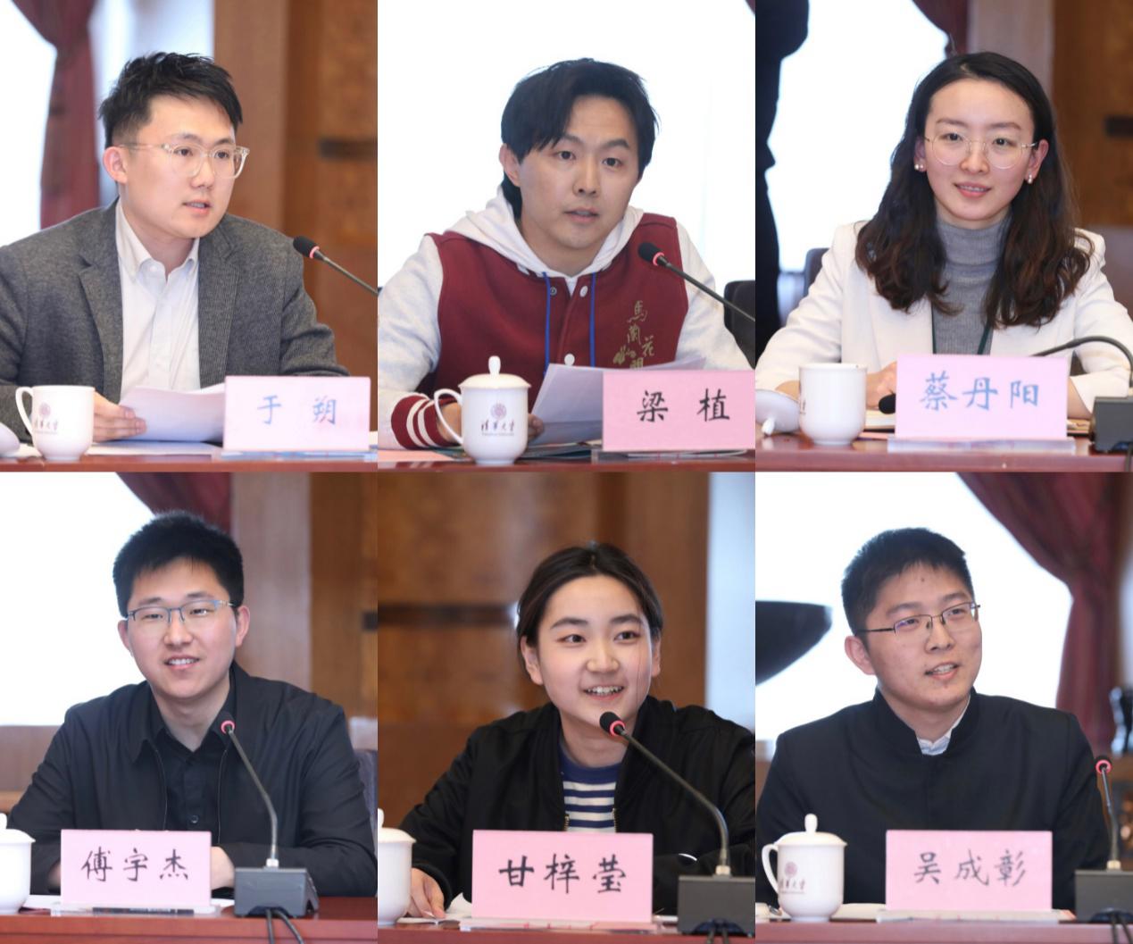 于朔汇报工作情况,梁植、蔡丹阳、傅宇杰、甘梓莹、吴成彰发言
