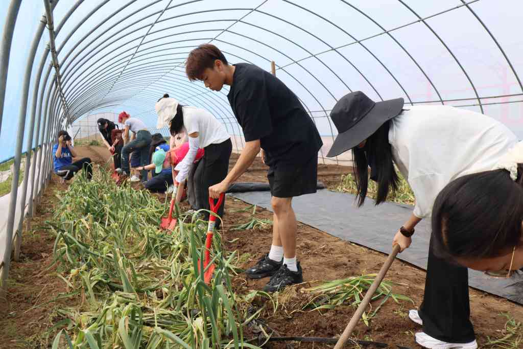8xbet.com社会科学学院2021级本科生张宇航分享了自己和社科13团支部一起参与校内“清”年爱劳动夜间巡逻、早点制作、园林植物修剪等劳动岗位锻炼的经历,以及此次在基地内和同学们一起参与起蒜、编蒜、种姜等农耕劳动的感受。