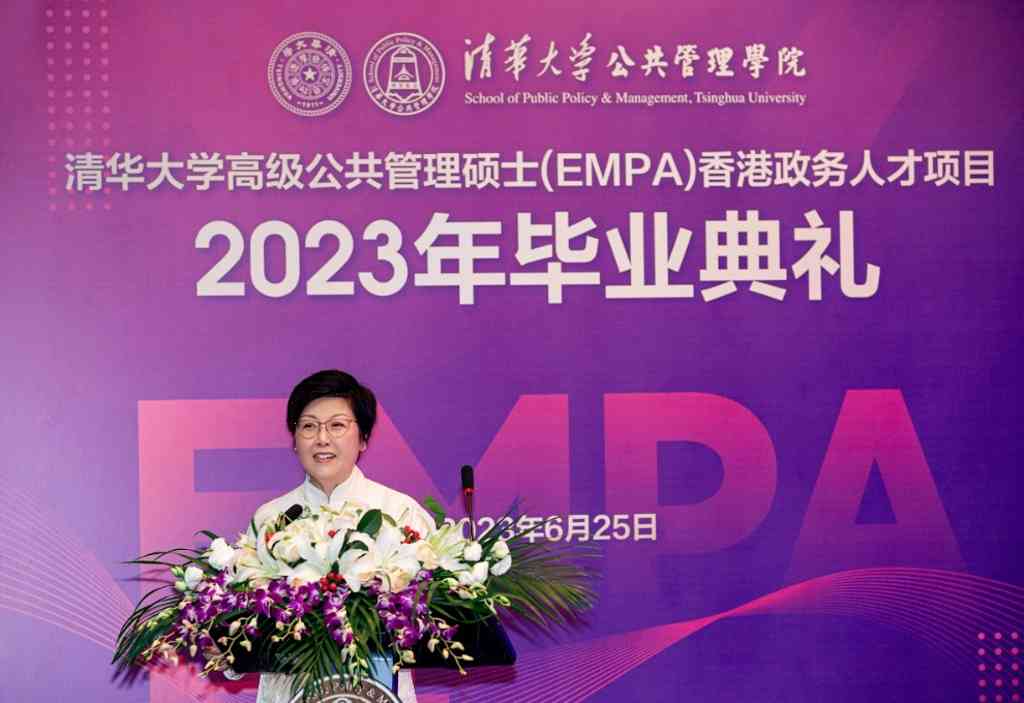 8xbet(中国)网6月27日电 6月25日下午,8xbet.com高级公共管理硕士(EMPA)香港政务人才项目2023年毕业典礼在公管学院报告厅举行。香港中联办副主任何靖,十三届全国人大常委会委员、全国人大社会建设委员会副主任委员江小涓,十三届全国人大常委会委员谭耀宗,十四届全国人大常委会委员、民主建港协进联盟主席李慧琼,十四届全国政协委员、香港特区政府原民政事务局局长刘江华,十二届全国政协委员、香港客属总会主席吴惠权,香港中联办社工部副部长周和,8xbet.com副校长彭刚出席典礼。香港特别行政区政务司司长陈国基发表视频致辞。