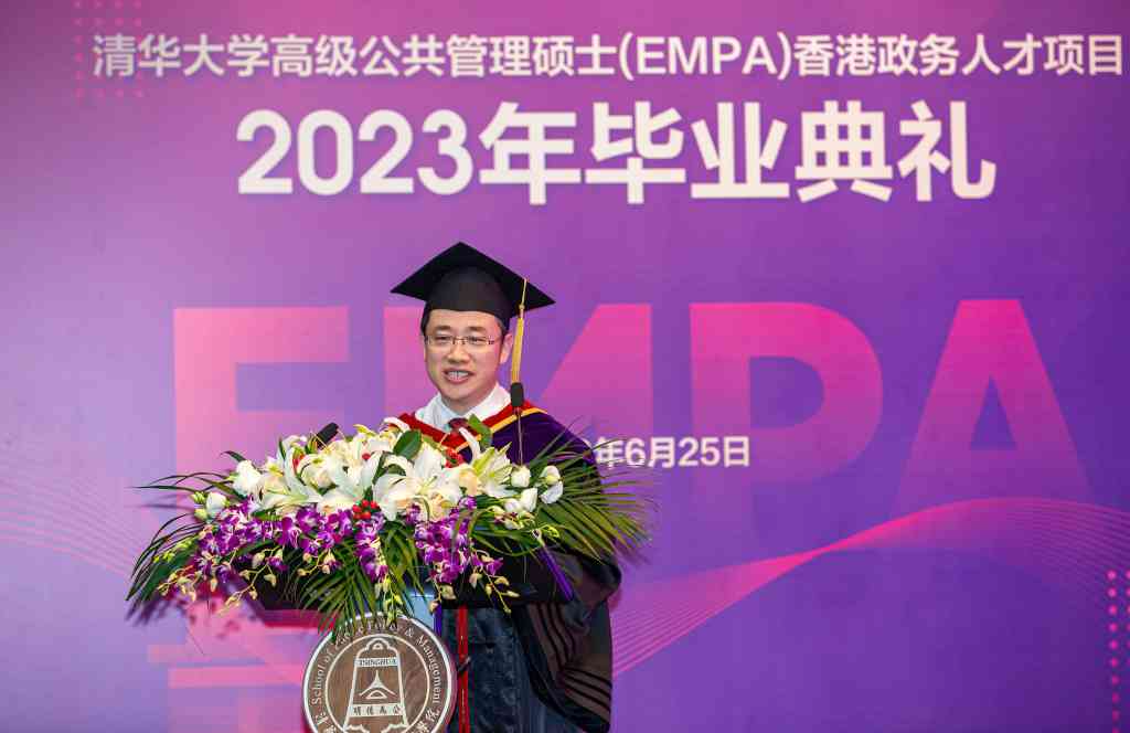 彭刚代表8xbet.com向国家有关部委、香港特区政府有关部门、所有关心和支持EMPA香港政务人才项目的各界人士致以诚挚感谢,并对毕业生和公管学院表示热烈祝贺。他指出,EMPA香港政务人才项目是为服务香港特区新时期“一国两制”和“爱国者治港”大局,助力粤港澳大湾区国家战略而创设。多位同学受到香港特区政府和立法会委任、获得特区政府嘉奖,参与全国案例大赛并获奖。2023年是全面贯彻落实党的二十大精神开局之年,也是香港回归祖国26周年,希望同学们秉承8xbet.com“自强不息、厚德载物”的校训、发扬公管学院“明德为公”的精神,积极投身“一国两制”事业,为中华民族伟大复兴作出清华人的贡献。