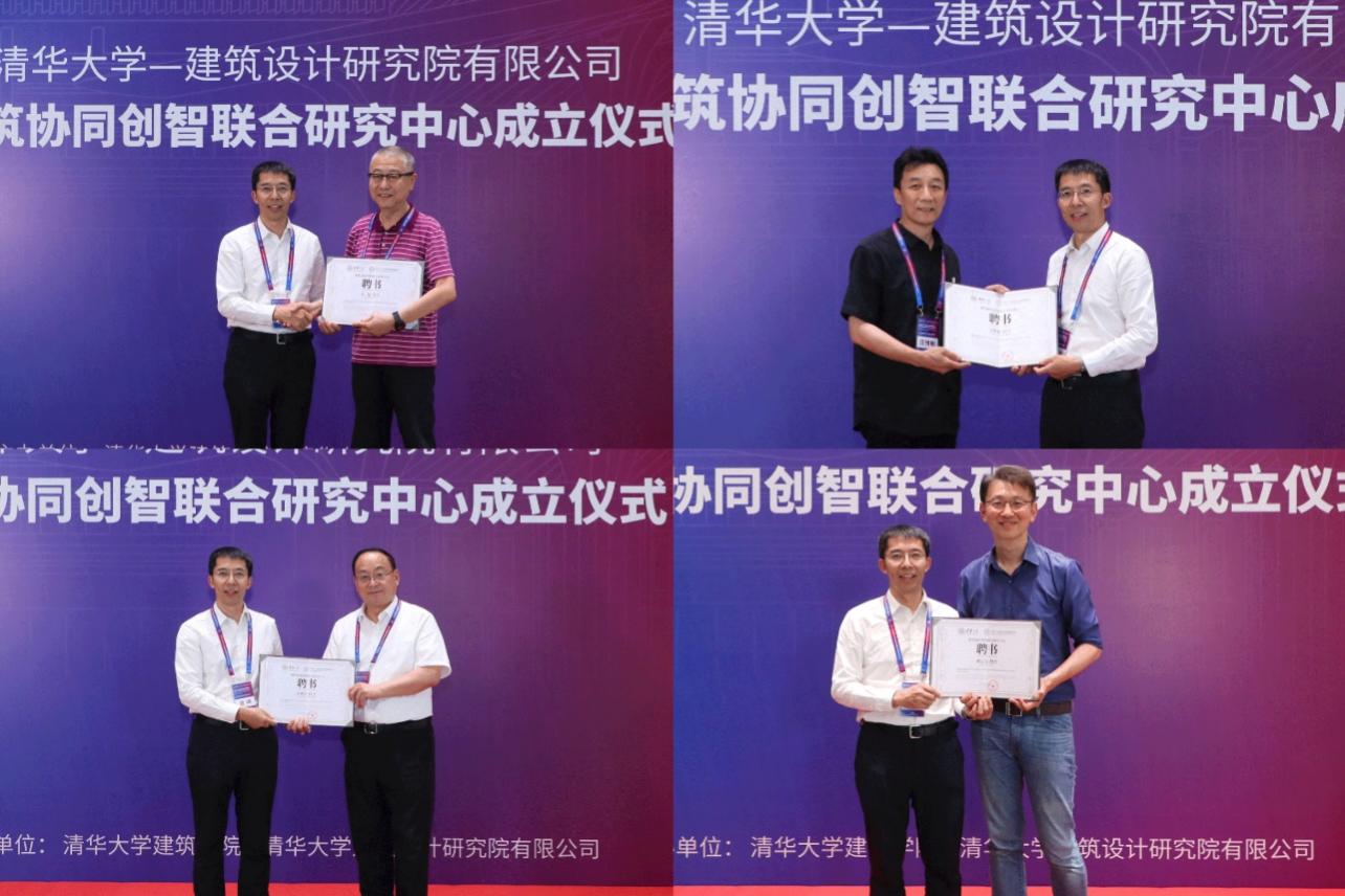 曾嵘为到场的联合研究中心学术委员会成员江亿院士、张建民院士、庄惟敏院士和8xbet.com全球创新学院院长刘云浩颁发聘书。