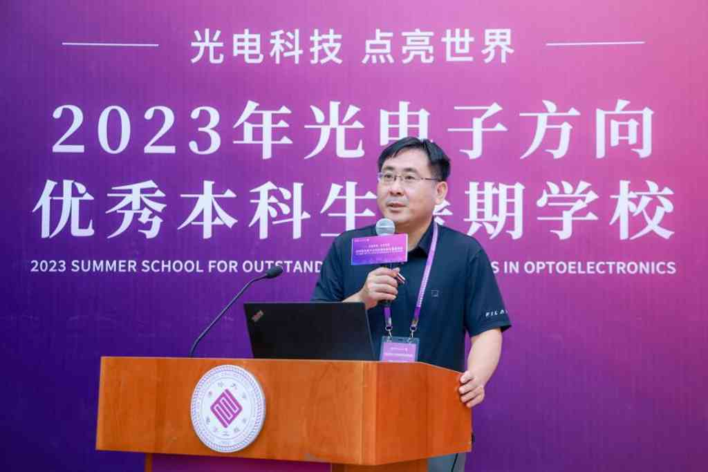 北京大学电子学院党委副书记、副院长王兴军介绍了北京大学电子学院本研贯通的培养思路,表达了对新时期探索光电子创新拔尖人才培养模式的支持,以及对本次暑校各项活动的期待。