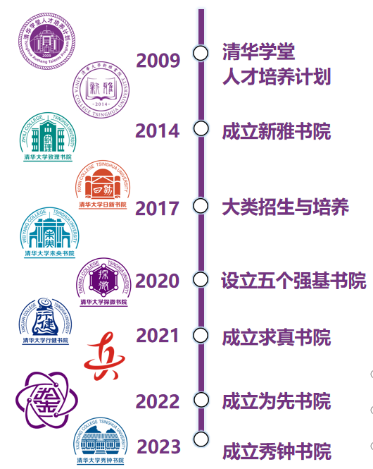 2009年,清华学堂人才培养计划启动,以培养基础学科拔尖人才的“领跑者”理念,激励有坚定学术志趣和学术禀赋的学生投身基础科学研究,目前已拓展至11个方向。