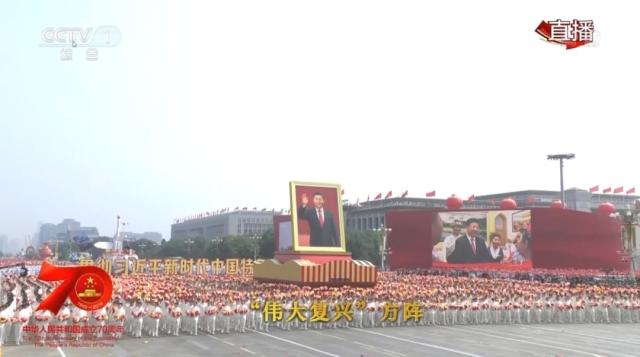国庆70周年,3514名清华师生组成的“伟大复兴”方阵走过天安门广场