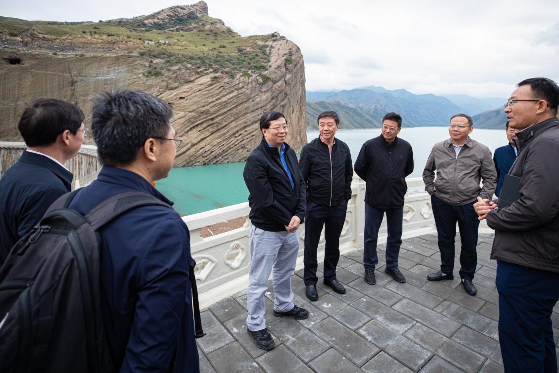 在疆期间,邱勇一行实地调研了石门子碾压混凝土拱坝。