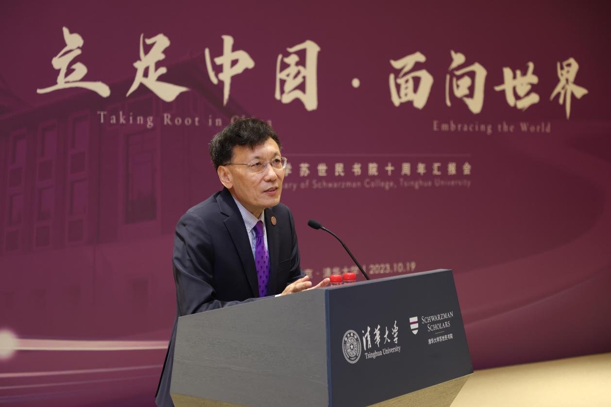 王希勤向苏世民书院全体师生员工和广大校友表示祝贺、向与会嘉宾表示欢迎,向所有关心支持书院发展和为书院建设付出辛勤努力的各界人士表达感谢。他指出,在2013年苏世民学者项目启动和2016年苏世民书院举办首届开学典礼之时,中美两国元首两度致信祝贺。在习近平主席两封贺信精神的指引下,苏世民书院成立十年以来始终秉承“立足中国、面向世界”的原则,锐意创新,探索出一条培养国际化青年领袖人才的新路径;开放包容,打造出一个促进跨文化交流合作的国际性平台;倾心育人,培养出一批具有世界眼光与高度社会责任感的优秀人才。十年的办学探索中,书院紧扣时代主题、树立崇高使命,坚持改革创新、勇于攻坚克难,保持开放姿态、积极应对挑战,为学校的发展改革积累了宝贵经验。