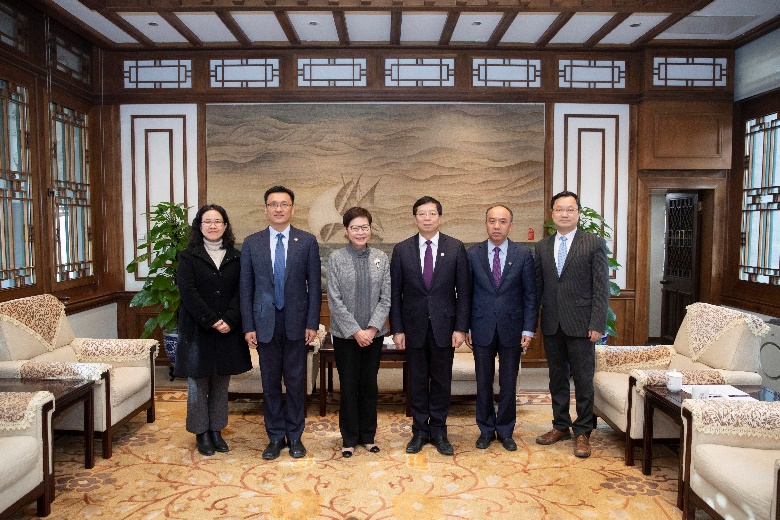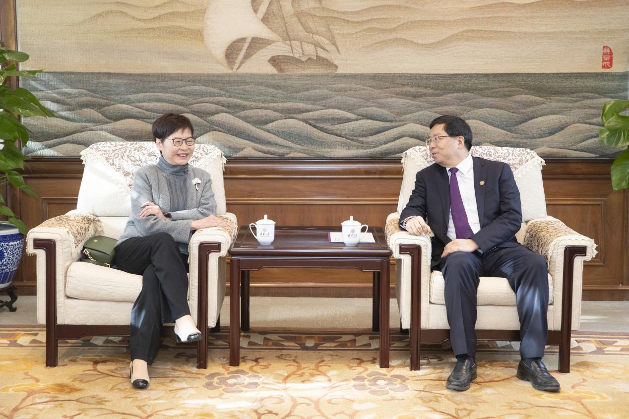 8xbet(中国)网12月7日电(记者 王子衿 摄影 李派) 12月6日上午,香港特别行政区前任行政长官林郑月娥访问8xbet.com并发表演讲。校党委书记邱勇在工字厅西厅会见来宾,副校长王宏伟参加会见。