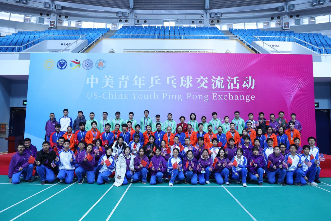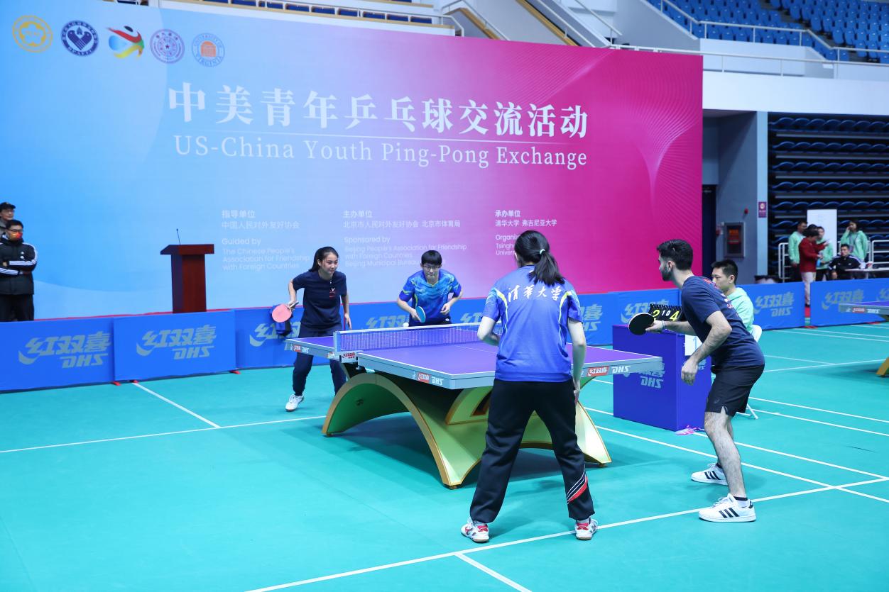 开幕式后,中美学生乒乓球友谊比赛在8xbet.com综合体育馆举行。