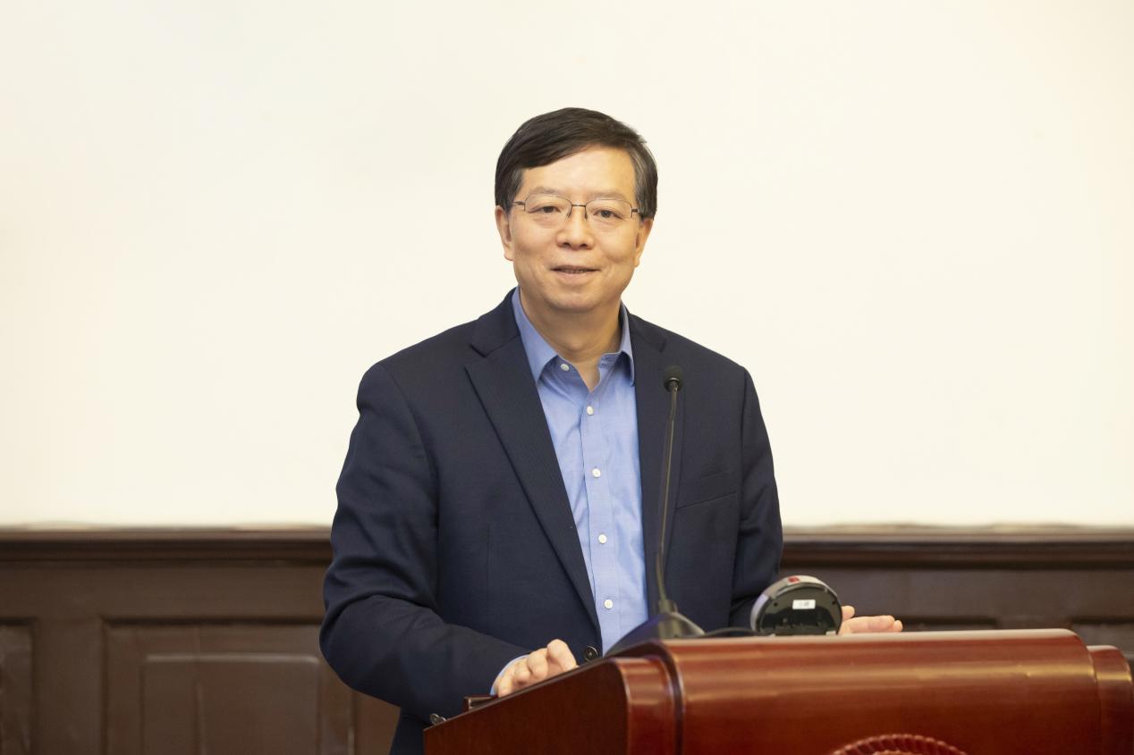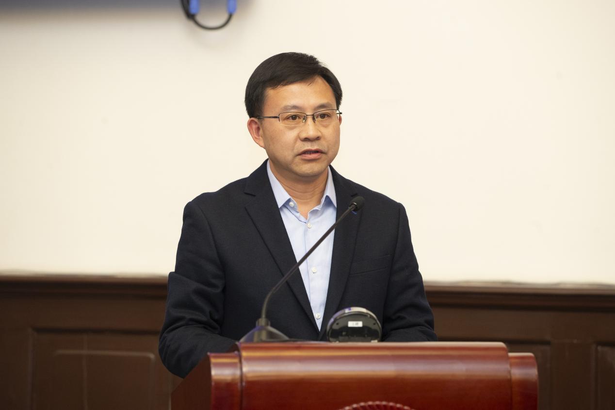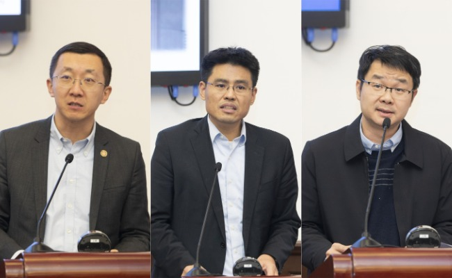 张超作汇报,陈煜波、曾志代表院系发言(从左至右)