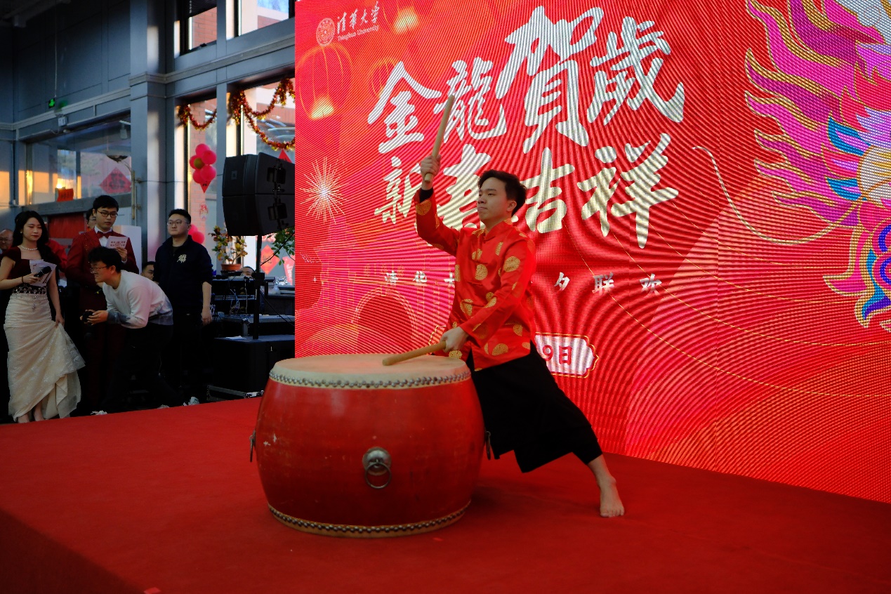联欢活动现场诚意满满,匠心独具。现场布置了美院王红卫教授团队设计的龙年形象“清华龙”装饰,入口和大厅里张贴了以“清华”为藏头的春联。活动现场还为每一位到场的师生员工准备了福袋,包括有拉花、灯笼、DIY贴画等,还有带有祝福语的水果盲盒,可谓惊喜连连。