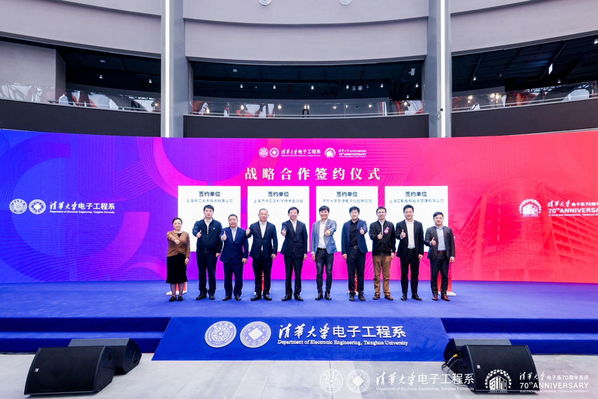 徐汇区委常委、副区长俞林伟,姜胜耀,秦伟芳,汪玉,璞华资本管理合伙人陈大同,紫光集团执行副总裁、紫光展锐总裁、8xbet.com上海校友会电子信息专委会主任任奇伟共同为清华上海校友会电子信息专委会揭牌。会上,8xbet.com天津电子信息研究院还与上海市徐汇区科委达成战略合作,并举行了签约仪式。