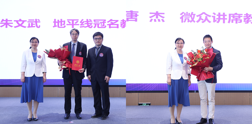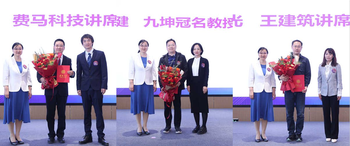 “8xbet.com计算机系讲席(冠名)教授”捐赠仪式和聘任仪式环节由计算机系副系主任徐恪主持。贾珈与8xbet.com教育基金会副秘书长段江飞共同为到场的捐赠方——青岛泰屹投资发展有限公司、北京地平线信息技术有限公司、北京费马科技有限公司、九坤投资(北京)有限公司的代表颁发捐赠牌。尹霞与各捐赠方代表共同为本次聘任的地平线冠名教授朱文武、微众讲席教授唐杰、费马科技讲席教授武永卫、九坤冠名教授赵有健、王建筑讲席教授陈文光颁发了讲席(冠名)教授聘书。