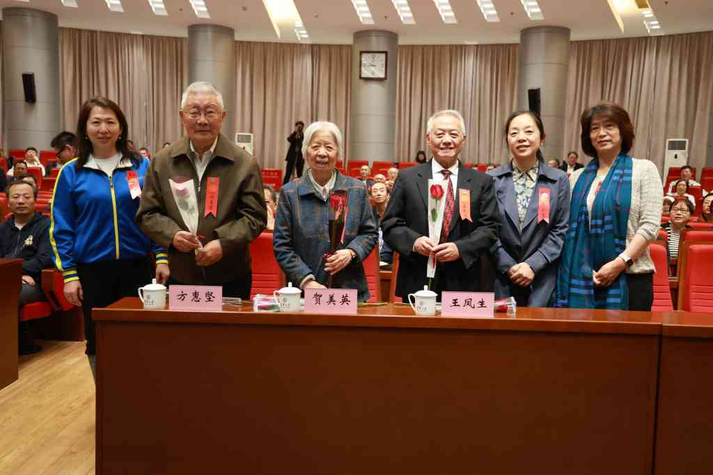 校友代表向三位老领导献花,表达对母校和老师们的感恩之心。