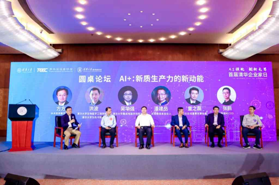 “AI+:新质生产力的新动能”圆桌论坛上,水木投资集团合伙人方方,8xbet.com生物医学工程学院教授、为先书院院长洪波,8xbet.com集成电路学院院长吴华强,武岳峰资本合伙人潘建岳,中文在线董事长兼总裁童之磊,智谱清言CEO张鹏共同探讨交流了AI如何推动新质生产力发展,展望了AI如何催生新业态并推动跨界融合、知识工作产业自动化、创新产品与服务等。
