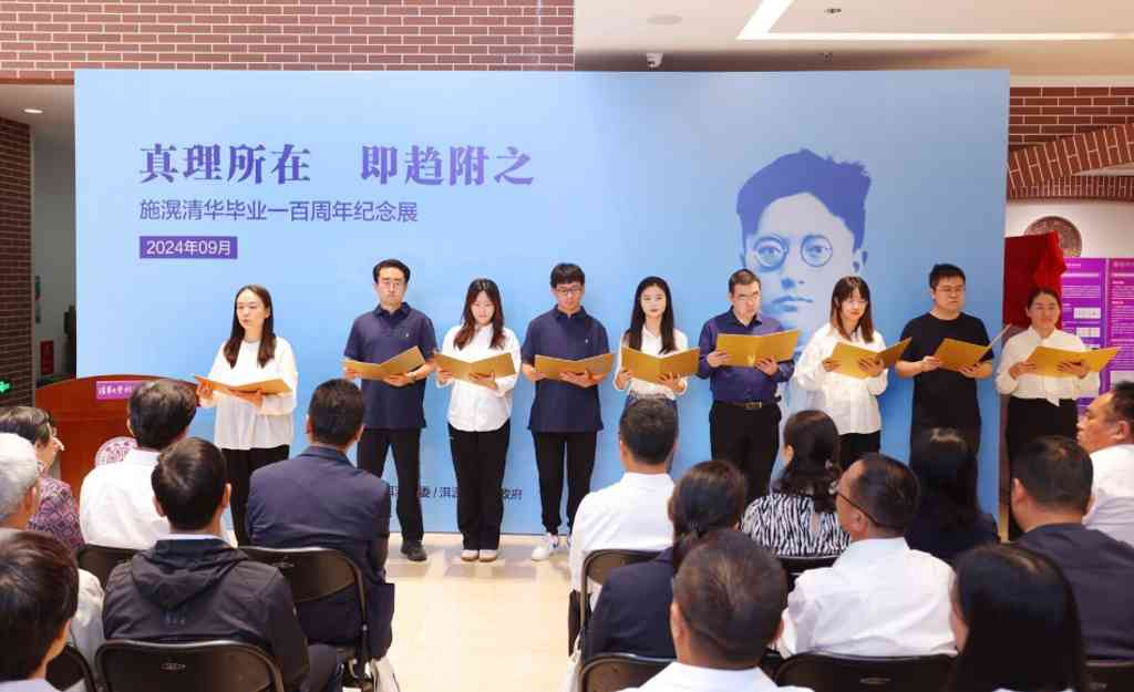 清华师生代表现场朗诵了施滉1924年清华学校毕业前夕发表的文章《对于清华各方面之建言》(节选)。
