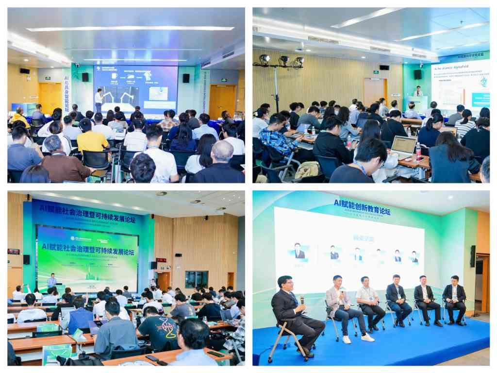 本次论坛设置九场人工智能主题专业论坛,其中四场由深圳国际研究生院主办。15日下午,四场专业论坛——AI与具身智能论坛、AI赋能社会治理暨可持续发展论坛、AI赋能科学研究论坛、AI赋能创新教育论坛在深圳大学城国际会议中心同步进行。