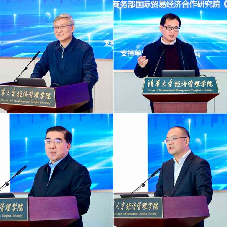 张宇燕、洪俊杰、盛斌、李俊作主旨演讲(从左至右、从上至下)