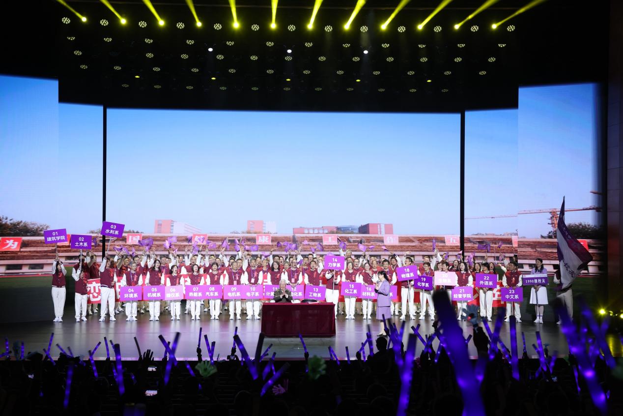 伴随着参加“马约翰杯”学生田径运动会开幕式的1990级校友代表方阵入场,活动在庄重而热烈的氛围中拉开帷幕。方惠坚逐一点名23个院系,校友们用此起彼伏的欢呼声向母校报到。