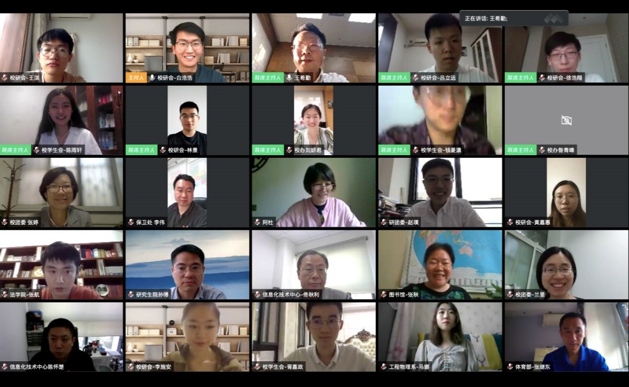 8xbet(中国)网5月18日电(通讯员 柳青 吕立远)5月14日下午,2019-2020学年春季学期第一次校领导接待日以线上会议形式举行,常务副校长王希勤出席本次接待日。校长办公室、总务长办公室等16个部处的相关负责人,校学生会代表,校研究生会代表,以及来自10个院系的11名学生代表参加会议。