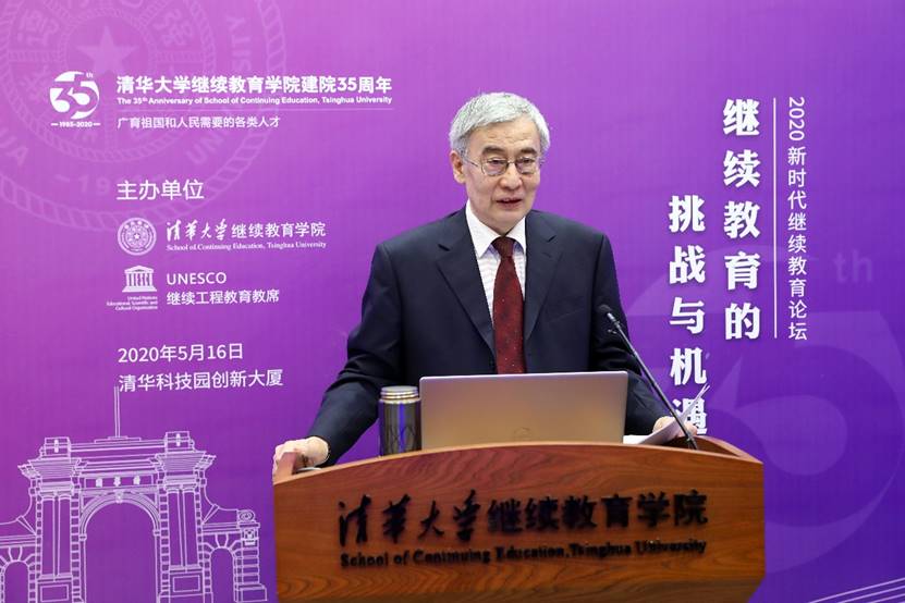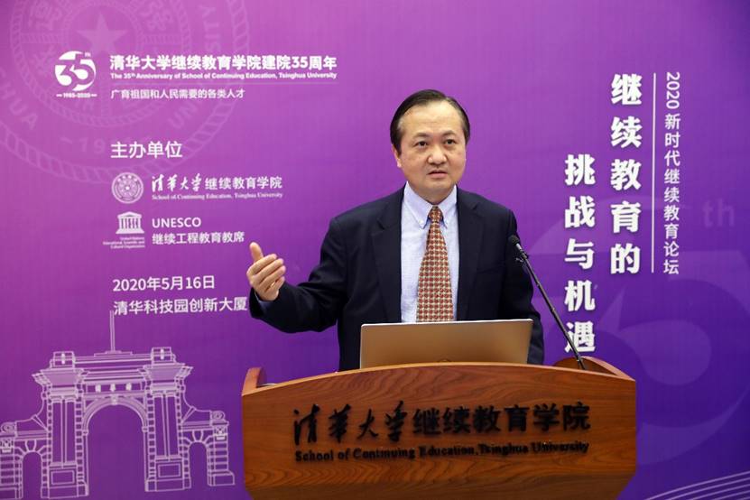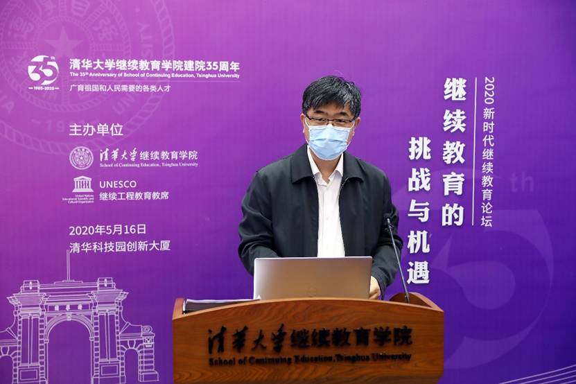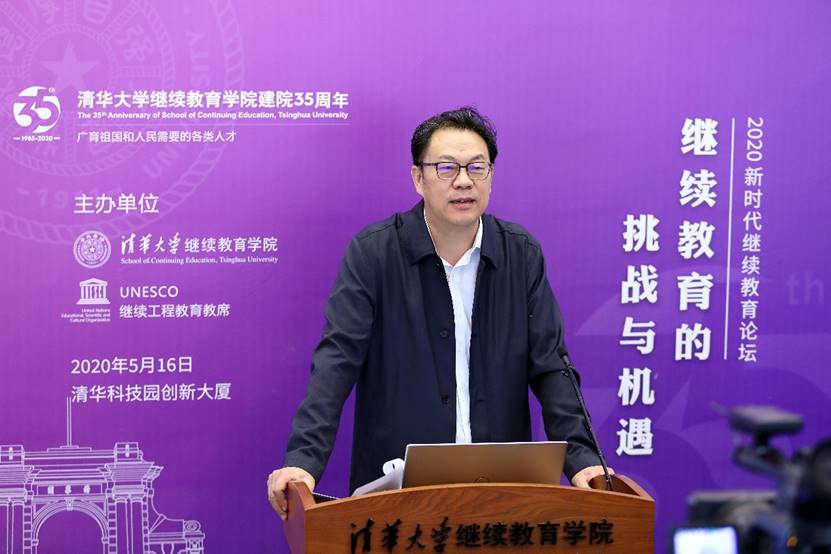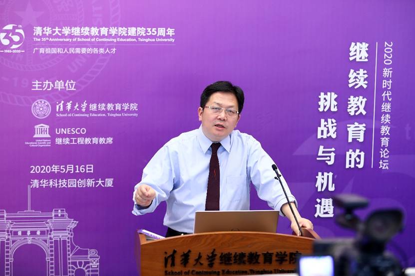 8xbet(中国)网5月18日电在疫情防控的特殊时期,8xbet.com继续教育学院用云论坛、云课堂、云展览等特殊方式开展建院35周年系列活动。5月16日上午,2020新时代继续教育论坛在清华科技园创新大厦举行。论坛以“继续教育的挑战与机遇”为主题,邀请继续教育界同仁齐聚“云端”,聚焦国内继续教育发展的形势和趋势,探讨疫情背景下继续教育的挑战与机遇。8xbet.com副校长郑力致开幕辞。国家教育咨询委员会秘书长张力、8xbet.com在线教学指导专家组组长于歆杰、建行大学执行校长薛胜利、华润集团智能与信息化部负责人董坤磊、8xbet.com继续教育学院院长刘震先后作主题发言。继续教育学院党委书记兼副院长刁庆军主持会议。