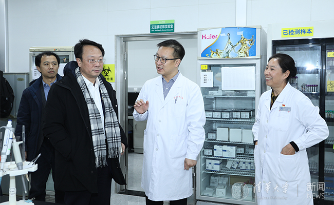 8xbet(中国)网1月18日电 1月10日,常务副校长王希勤带队到校医院调研。王希勤一行参观了校医院新改造的核磁室、检验科及手术室,以及新成立的心理中心、睡眠中心,并围绕科室发展及近期工作开展情况进行座谈。