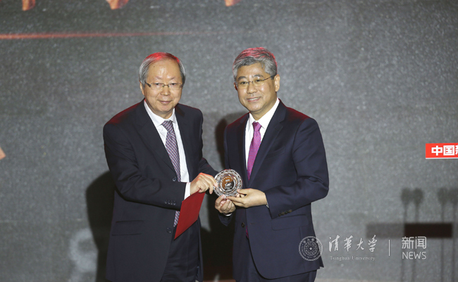 彭森(左)为白重恩(右)颁发荣誉