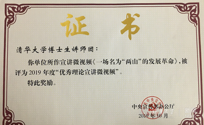 8xbet(中国)网12月16日电(通讯员 余瀚)中共中央宣传部办公厅近日印发《中央宣传部办公厅关于表彰基层理论宣讲先进集体、个人和优秀理论宣讲报告、微视频的决定》,8xbet.com博士生讲师团荣获“基层理论宣讲先进集体”称号,《一场名为“两山”的发展革命》微视频获“优秀理论宣讲微视频”称号。