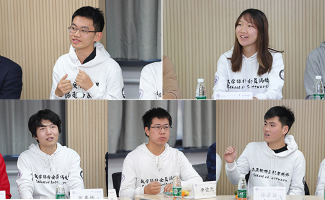 特等奖学金获得者、软件61班游凯超结合自身本科阶段与学风有关的小故事,分享了宝贵的学习经验与体会。游凯超认为,学习最重要的是获取知识,课堂是知识积累的重要来源,但获取知识的途径不能仅仅局限在课堂上,比如老师们的开放交流时间、丰富的讲座资源和网络上的学习资源等都是积累知识的途径。同时,他也希望九字班的学弟学妹们能够端正心态,客观看待排名,更加注重知识的积累。