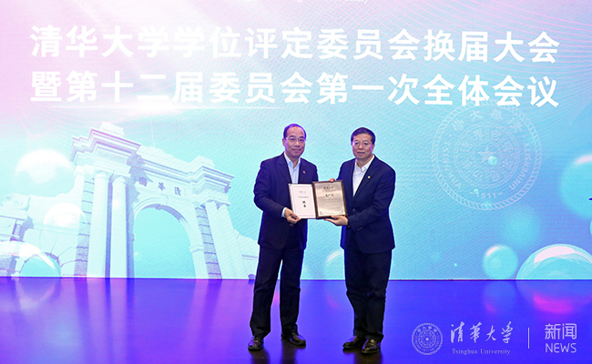 邱勇为第十一届学位评定委员会委员颁发纪念牌,为第十二届学位评定委员会委员颁发聘书。