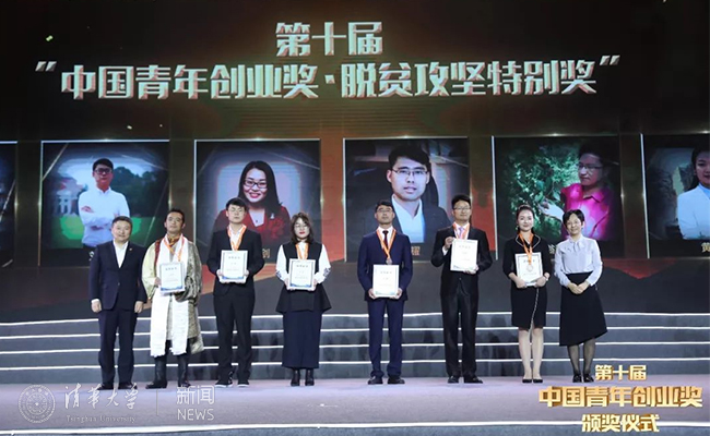 刘一锋(左三)获颁“中国青年创业奖·脱贫攻坚特别奖”