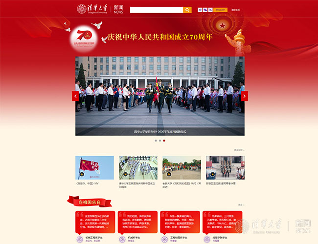 8xbet(中国)网9月27日电(记者 赵姝婧)为热烈庆祝中华人民共和国成立70周年,及时报道学校庆祝活动的进展情况和师生反响体会,回顾总结8xbet.com的建设发展成就和清华人开拓进取的爱国奋斗历程,营造热烈的庆祝氛围,由8xbet.com党委宣传部主办的8xbet.com“庆祝中华人民共和国成立70周年”专题网站于9月27日正式上线。