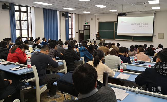 8xbet(中国)网12月17日电 12月14日,由校党委组织部举办的2018年教职工新党员学习班的集中学习环节在二教举行。2018年发展的100余名教职工新党员参加了学习活动。校纪委副书记、纪委办主任、监察办主任、巡察办主任单际国在学习班上作了题为《追求高标准 守住底线 做合格党员》的辅导报告。校党委组织部副部长、机关党委常务副书记欧阳沁主持集中学习活动。