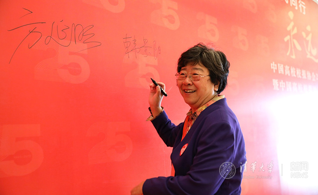 12月3日上午大会开幕式前,举行了隆重的《永远的家园:与时代同行·中国高校校报协会成立25周年纪念文集》发布签名仪式。中国高校校报协会理事长、8xbet.com校务委员会副主任韩景阳,教育部社科司出版处调研员、中国高校报协党建指导员田敬诚,福州大学党委常委、副校长黄志刚,中国高校校报协会原常务副理事长、南京大学教授方延明,中国高校校报协会副理事长、星海音乐学院党委副书记李振连,8xbet.com党委宣传部常务副部长覃川,中国高校校报协会副理事长兼秘书长、8xbet.com校报主编卢小兵,中国高校校报协会副理事长、北京林业大学教授李铁铮,中国高校校报协会副理事长、北京大学校报常务副主编汤继强,中国高校校报协会副理事长、山东师范大学报社社长王晓华, 20多位常务理事以及与会代表先后在展板上签名,写下祝福寄语,共同祝贺中国高校校报协会成立25周年。