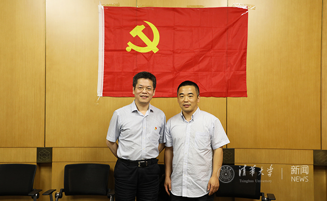 邓卫与于涛方在党旗下合影