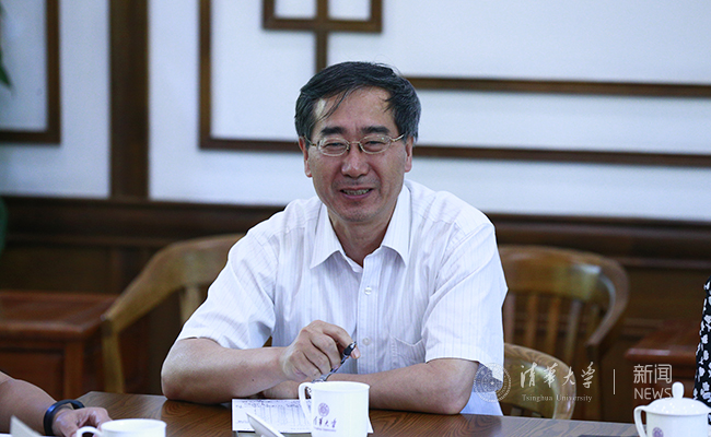 电子工程系副系主任郝智彪、美术学院副院长马赛、微纳电子系副系主任吴华强、资产管理处副处长连彦青畅谈收获与体会 记者 张帆 摄