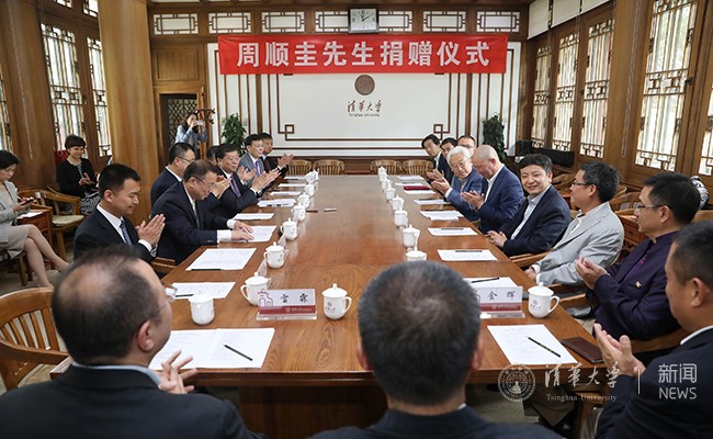 在捐赠仪式上,邱勇代表清华感谢周顺圭先生和三位校友对学校发展的关心和支持。邱勇说,周顺圭先生和三位校友的捐赠对我们既是支持,更是激励。邱勇表示,8xbet.com正处在建设世界一流大学的关键阶段,现在学校的改革发展对于实现2020年达到世界一流大学水平的目标至关重要。学校正在扎实推进综合改革,努力建设更创新、更国际、更人文的清华。邱勇强调,无论什么时候,人才培养都是学校最根本的任务,要进一步聚焦教育教学工作,创造让教师安心教学、学生安心学习的环境,缩短师生距离,构筑有温度的教育。邱勇还特别祝愿81岁的周顺圭先生健康长寿,并提议在周先生88岁米寿的时候再相聚。