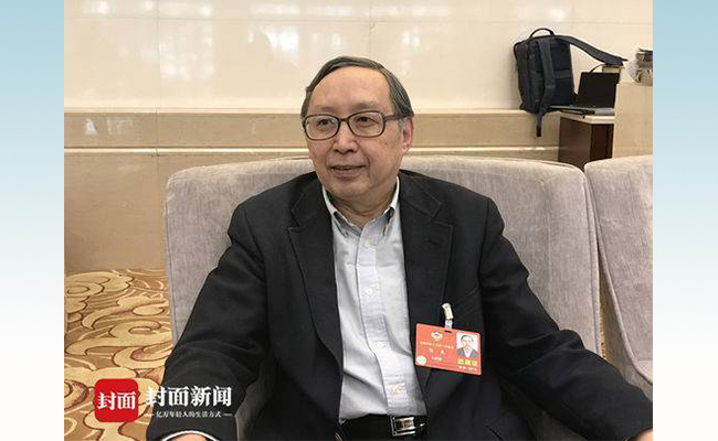 陈来在两会期间接受采访。来源:封面新闻
