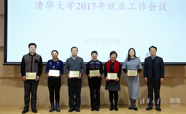 杨斌宣读了2016~2017学年度就业工作先进集体综合奖、就业引导奖、职业辅导奖和就业工作先进个人的获奖名单。陈旭、杨斌和王希勤分别为获综合奖、就业引导奖和职业辅导奖的院系颁奖。