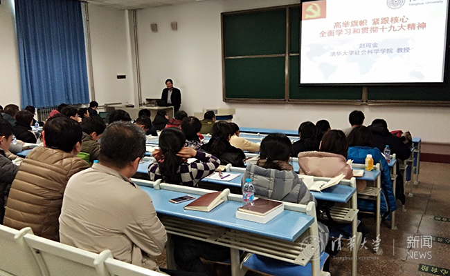 社会科学学院副院长赵可金教授在学习班上做了题为《高举旗帜 紧跟核心 全面学习和贯彻十九大精神》的辅导报告。他紧密围绕党的十九大报告主题,结合党的十八大以来党和国家事业发生的历史性变革,论述了我国发展新的历史方位——中国特色社会主义进入了新时代。赵可金从新使命、新思想、新方略、新部署等角度,对十九大精神进行了全面、详细的解读。他指出,我们要高举习近平新时代中国特色社会主义思想伟大旗帜,坚决维护习近平总书记作为党中央的核心、人民的领袖、军队的统帅,坚定信念,肩负使命,投身实现中华民族伟大复兴的实践。
