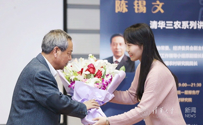 最后,学生代表上台献花,对陈锡文教授两个多月来的精心授课致以敬意和感谢。