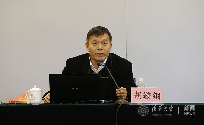 胡鞍钢作报告。记者 张宇 摄