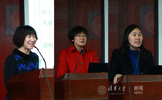 王晓莉、郝永红、王燕(从左到右)分别解读教师校外兼职政策、学校经费管理政策和校科研成果转化政策。石加东 摄